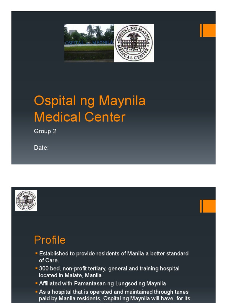 The Ospital ng Maynila Medical Center is a 300-bed non-profit tertiary general and training hospital in Malate Manila Philippines. Ospital ng Maynila Medical Center Manila Philippines. It is a non-profit Philhealth-accredited tertiary training hospital with 300-bed capacity fully supported and subsidized by the City of Manila.