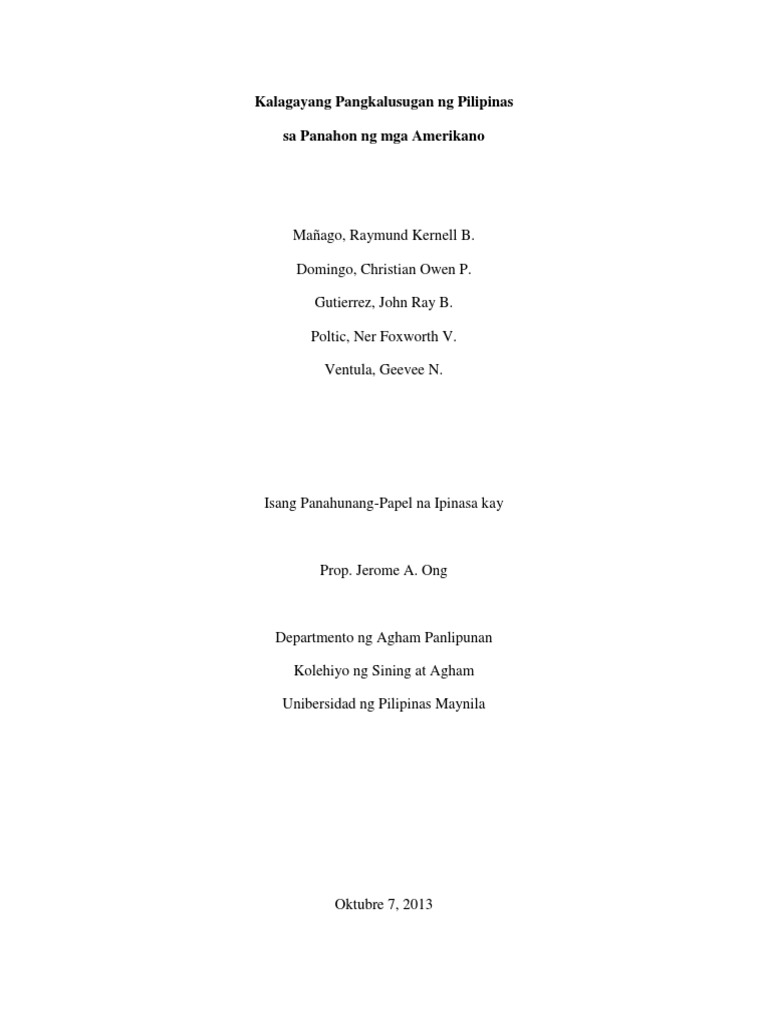 01012012 Naglalayon ang papel na itong ilahad ang naging pamamalakad ng Pamahalaang Militar na itinayo ng mga Amerikano sa Pilipinas mula nang matapos ang kunwa-kunwariang labanan sa Maynila sa pagitan ng Estados Unidos at Espanya noong Agosto 13 1898 hanggang bago ang pagsiklab ng Digmaang Pilipino-Amerikano noong Pebrero 4 1899. 15022014 Mga Tao noong Panahon ng mga Amerikano Thomasites-mga unang gurong pinadala ng mga Amerikano sa Pilipinas. Noong Hunyo 12 1898 ipinahayag ni Aguinaldo ang kasarinlan ng Pilipinas sa Kawit Cavite na nagtatag ng Unang Republika ng Pilipinas sa ilalim ng unang demokratikong konstitusyon ng Asya.
